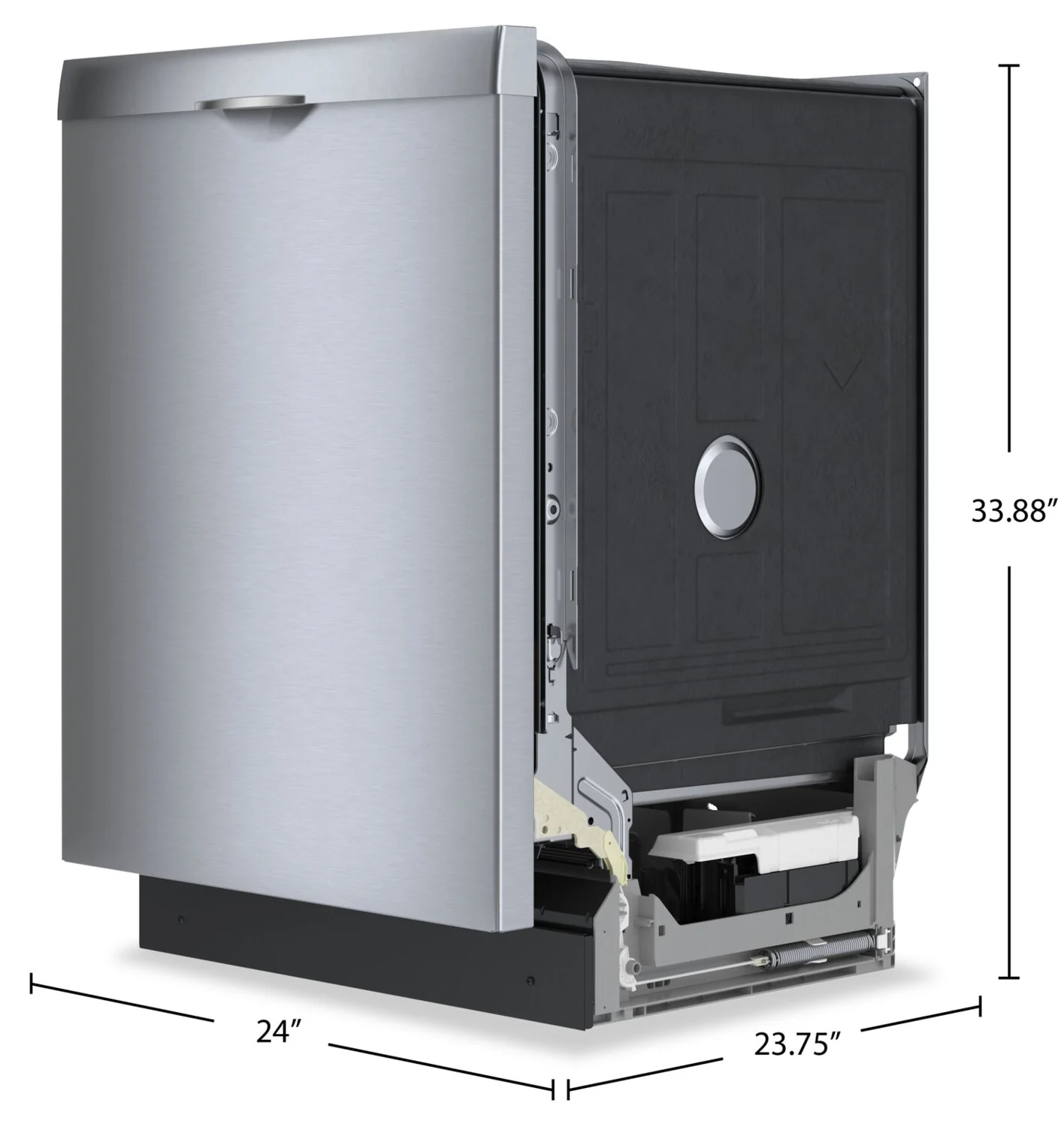 Quiet 44 dBA dishwasher with adjustable RackMatic and stainless steel tub.