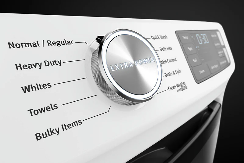 Heavy-duty washer with Extra Power button and 24-hour Fresh Hold.