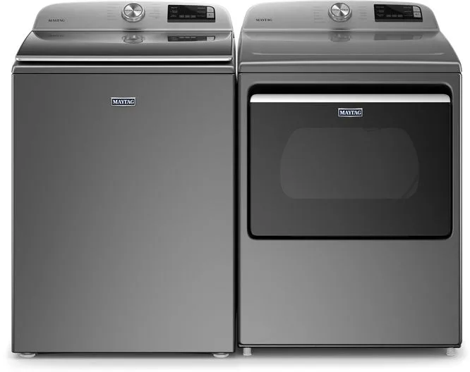 Maytag MED6230HC 7.4 Cu. Ft. Smart Electric Dryer with Extra Power Button – Metallic Slate. Tackle heavy fabrics and large laundry loads with unyielding performance using this robust 7.4 cubic foot smart electric dryer. The exclusive Extra Power button boosts drying power on any cycle by extending time heat and tumbling ensuring thick fabrics like denim and heavy towels get thoroughly dried the first time around. Advanced Moisture Sensing technology monitors moisture and air temperatures to help prevent over-drying preserving the integrity and lifespan of your garments. With the integrated smart features you can remotely start or stop your appliance and get end-of-cycle notifications directly via the Maytag app. Built with commercial-grade components this incredibly durable dryer is engineered to handle the toughest loads while maintaining exceptional energy efficiency.